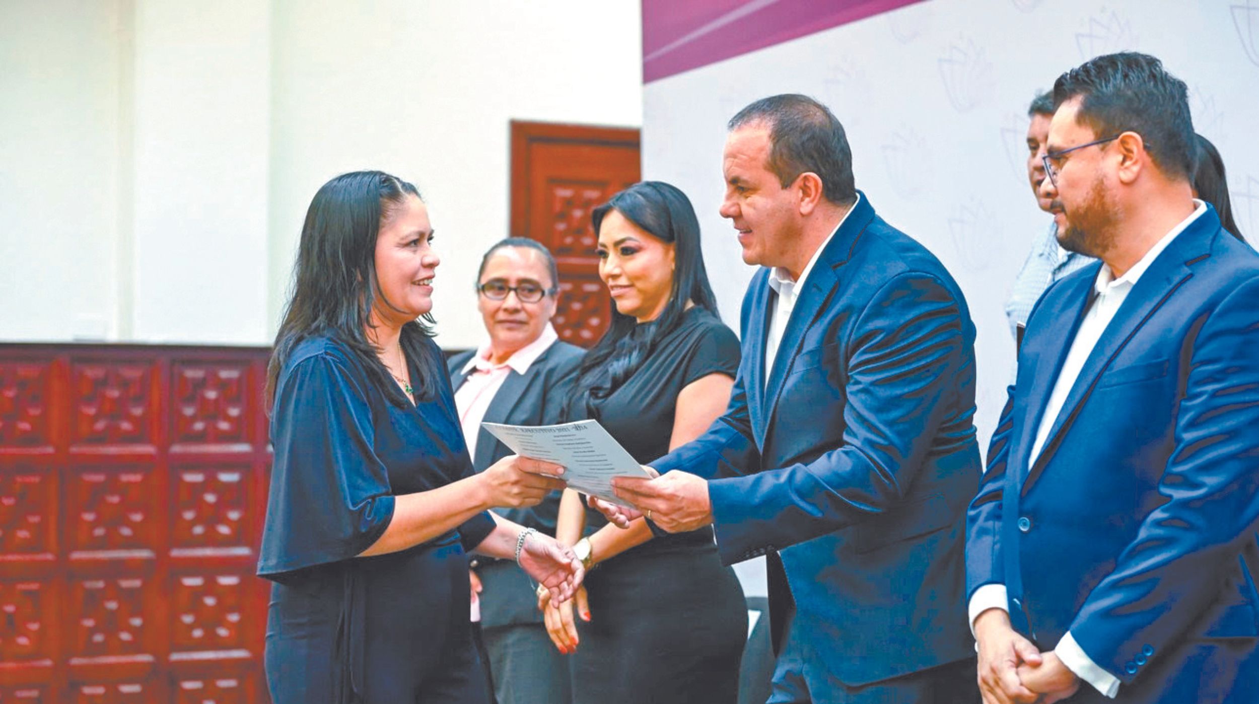 El Gobernador Cuauhtémoc Blanco Bravo encabezó la ceremonia de Entrega de Dictámenes a 52 personas servidoras públicas por parte de la Comisión Mixta de Escalafón, para los Trabajadores del Sindicato Único de Trabajadores del Poder Ejecutivo, Entidades Paraestatales y Órganos Constitucionales Autónomos (Fiscalía General del Estado) del Estado de Morelos (S.U.T.P.E.E.P.O.C.A.E.MOR), que participaron en el proceso escalafonario 2023 y que hoy tienen certeza jurídica sobre su plaza laboral.