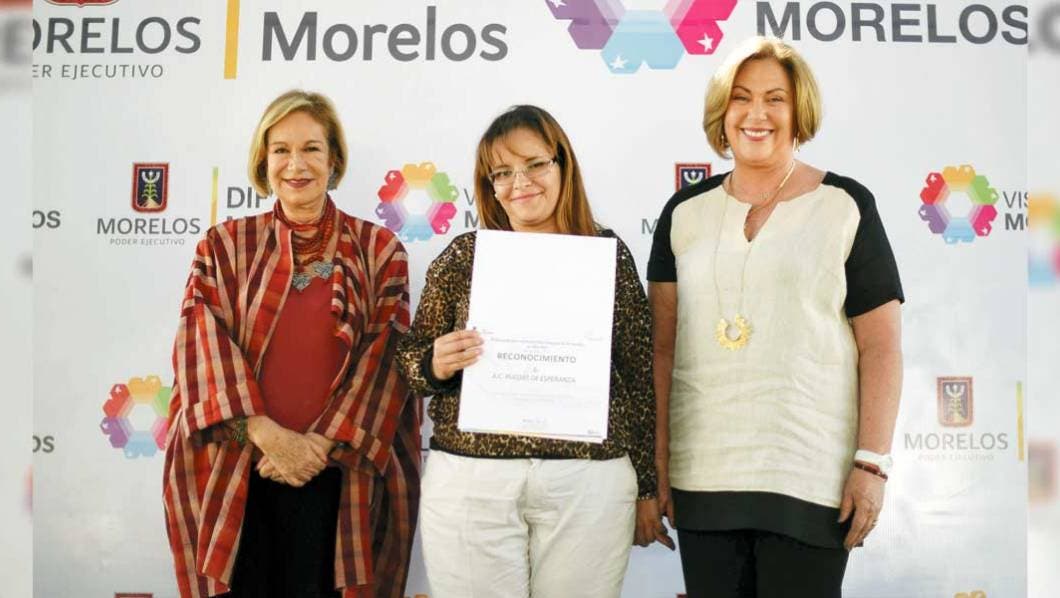 Acto. La escritora Guadalupe Loaeza y la presidenta del DIF Morelos, Elena Cepeda, entregaron reconocimientos a organizaciones civiles, entre ellas Ruedas de Esperanza.