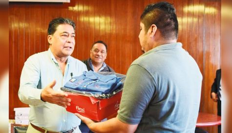 Equipo. Zapatos, pantalón y camisa de mezclilla, así como playera tipo polo, contienen los paquetes entregados a los empleados.