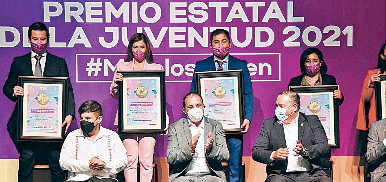 Cuernavaca:El Gobernador Cuauhtémoc Blanco Bravo entregó 17 galardones a jóvenes reconocidos en el Premio Estatal de la Juventud 2021.
