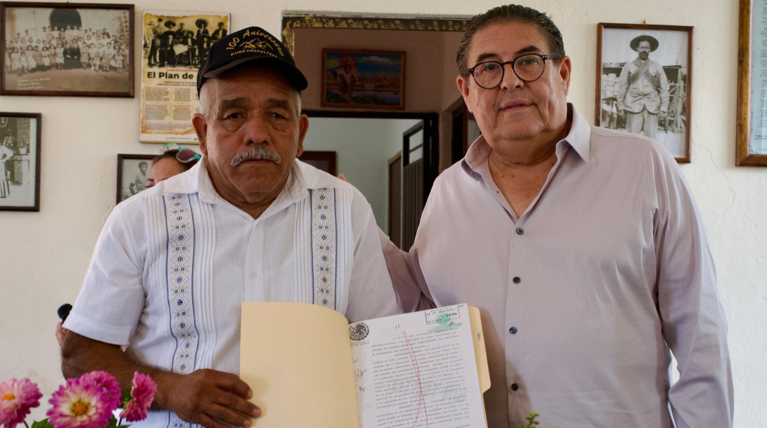 En el marco de la conmemoración del 100 aniversario del Ejido de Chapultepec, el senador por Morelos, Víctor Mercado, hizo entrega de los documentos históricos básicos de la comunidad, los cuales fueron gestionados ante el Archivo General Agrario.