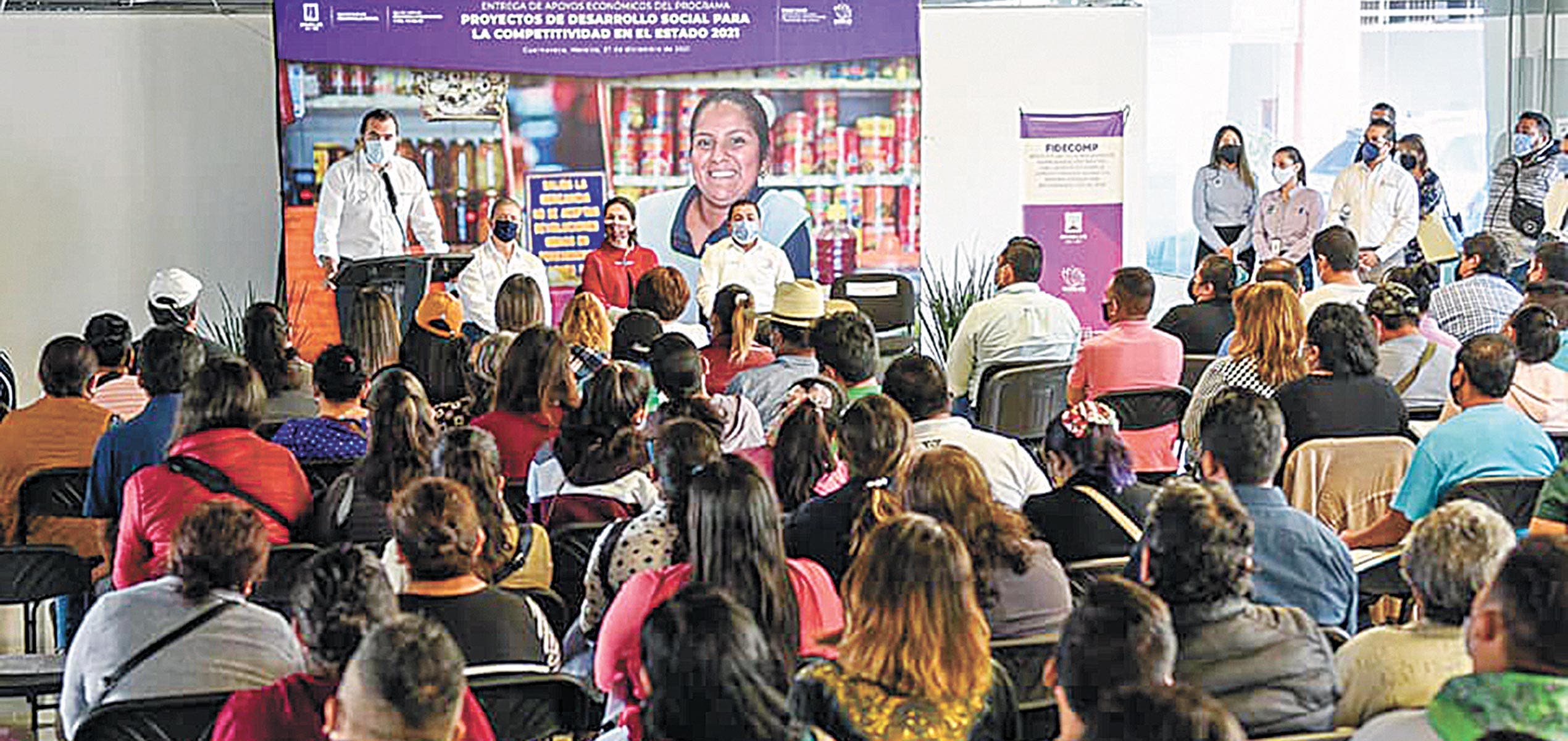 Cuernavaca.- El Gobierno del Estado, a través de la Secretaría de Desarrollo Social (Sedeso), hizo la entrega de apoyos económicos correspondientes al programa de “Proyectos de Desarrollo Social para la Competitividad en el Estado 2021”, que ejecutó con una inversión de tres millones 840 mil pesos por parte del Fideicomiso Ejecutivo del Fondo de Competitividad y Promoción del Empleo (Fidecomp).