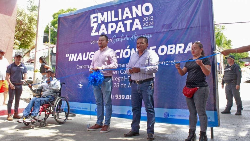 El alcalde Sergio Alba Esquivel inauguró la construcción de pavimentación con concreto hidráulico de la Calle Acacias en el tramo Pedregal-5 de Mayo de la colonia 28 de Agosto, con 939.85 metros cuadrados.