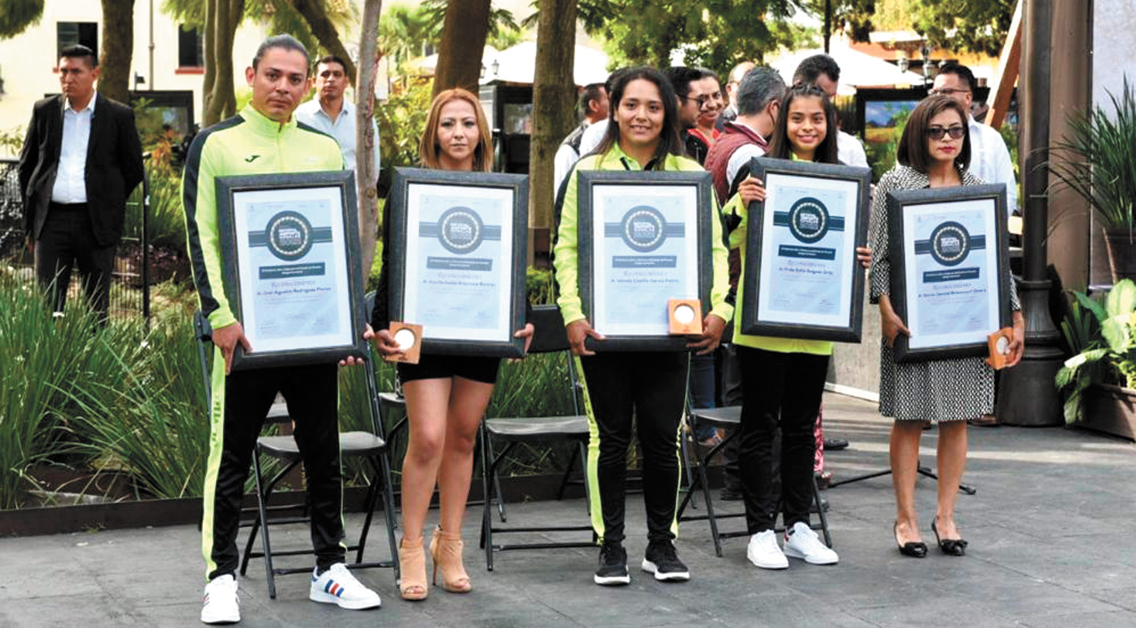 Galardonados. Tres deportistas y algunos entrenadores.