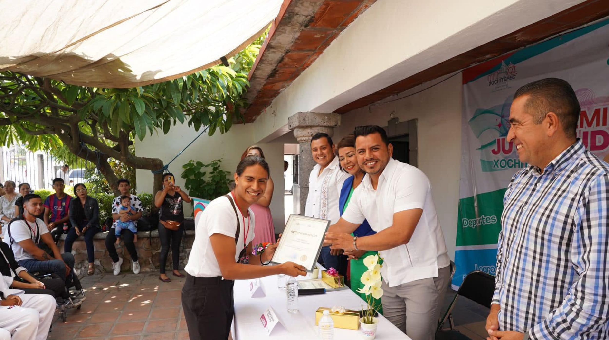 Participaron en la entrega de los reconocimientos la maestra Edith Zúñiga Madrigal, presidenta del DIF Xochitepec; Gabriel Gómez Romero, director general de Bienestar Social municipal; y Maximiliano Duque Urióstegui, subdirector de Desarrollo Integral de las Juventudes del IMPAJOVEN.