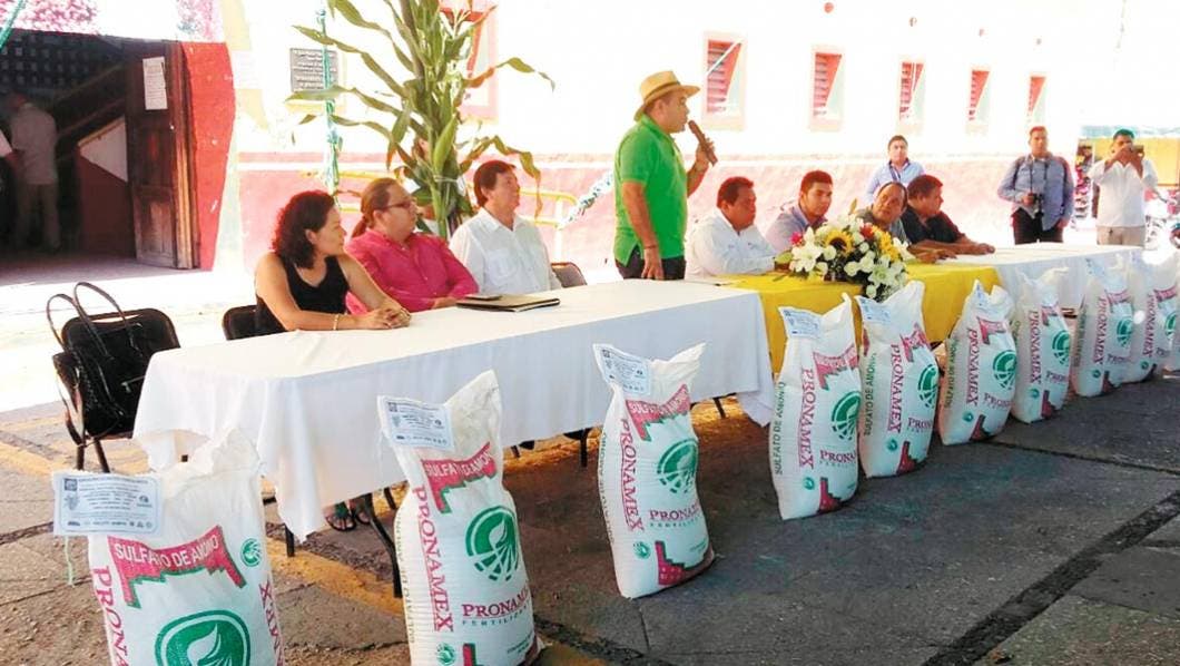 Ayuda. Agustín Alonso Gutiérrez entregó fertilizantes a productores de ocho de nueve ejidos de Yautepec, con una inversión de casi medio millón de pesos.