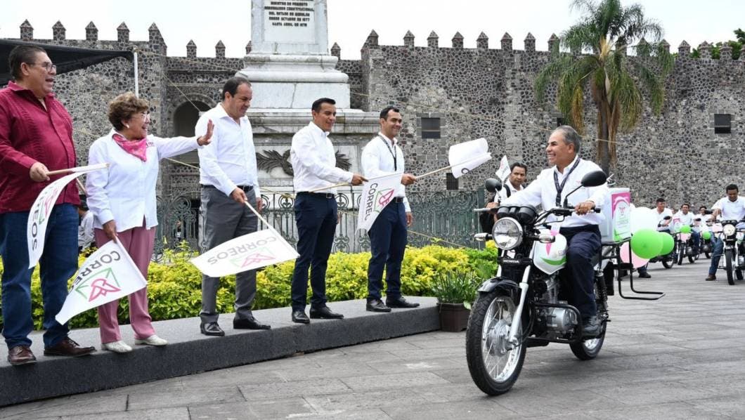 El Gobernador Cuauhtémoc Blanco Bravo y Rocío Bárcena Molina, directora general del Servicio Postal Mexicano (Sepomex), encabezaron la entrega de 40 motocicletas al personal encargado de entregar la correspondencia, mensajería y paquetería en territorio morelense.