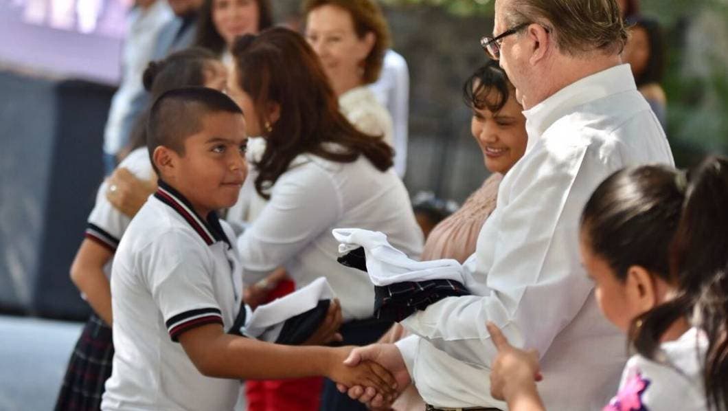El mandatario entregó seis mil 482 uniformes a alumnos de 24 primarias de Cuernavaca, Emiliano Zapata, Miacatlán, Xochitepec y Temixco; ello ante la presencia de maestros y padres de los estudiantes beneficiados; explicó que el uniforme escolar es una señal de igualdad, que cumple con un principio democrático.