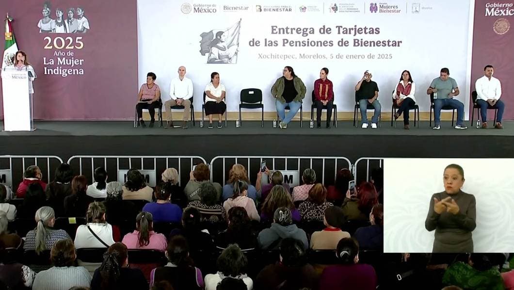 Este domingo, la presidenta de México, Claudia Sheinbaum Pardo , en compañía de la gobernadora de Morelos, Margarita González Saravia , encabezan la entrega de las Tarjetas de las Pensiones del Bienestar en un evento realizado en el estadio Mariano Matamoros .