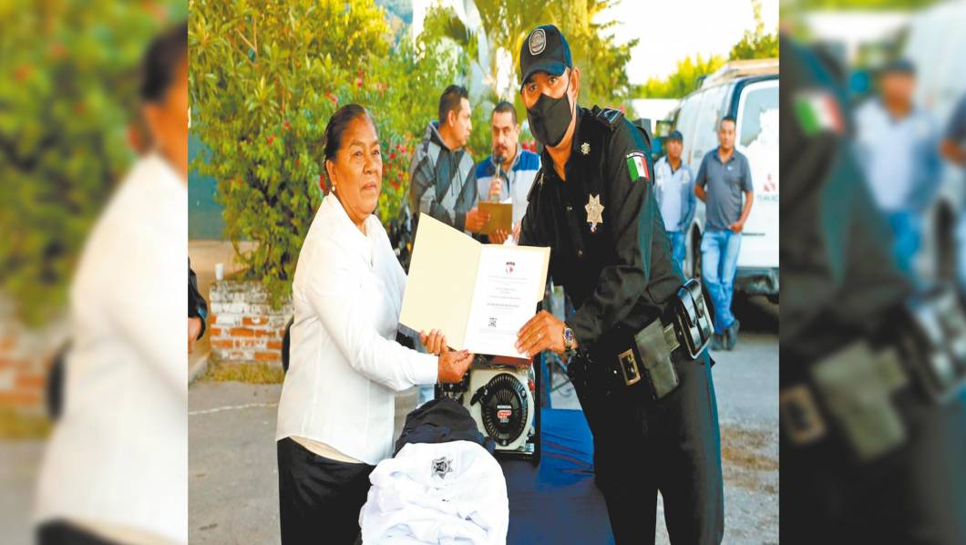 La presidenta municipal de Temixco, Juanita Ocampo Domínguez, encabezó la entrega de certificados, reconocimientos, uniformes y herramientas para el personal administrativo y operativo de la Secretaría de Seguridad Pública.
