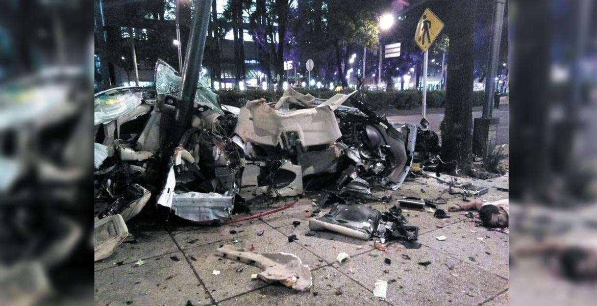 Según los reportes de la Procuraduría General de Justicia de CDMX, el chofer, de nombre José Salomón Villuendas Adame, de 33 años, quien dijo ser originario de Morelos, manejaba a 160 kilómetros por hora, y perdió el control por lo que el auto, un BMW Z6 color blanco, placas C33AJS, modelo 2007 se subió a la banqueta, se estrelló y se partió en dos.