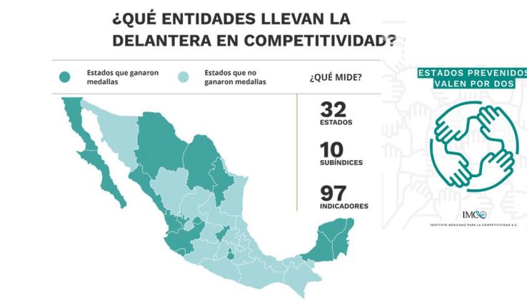 En el ICE 2020, el IMCO impuso medallas de primero, segundo y tercer lugar a los estados dependiendo la calificación que consiguieron en los índices y subíndices que fueron evaluados; de 32, 16 consiguieron medalla.
