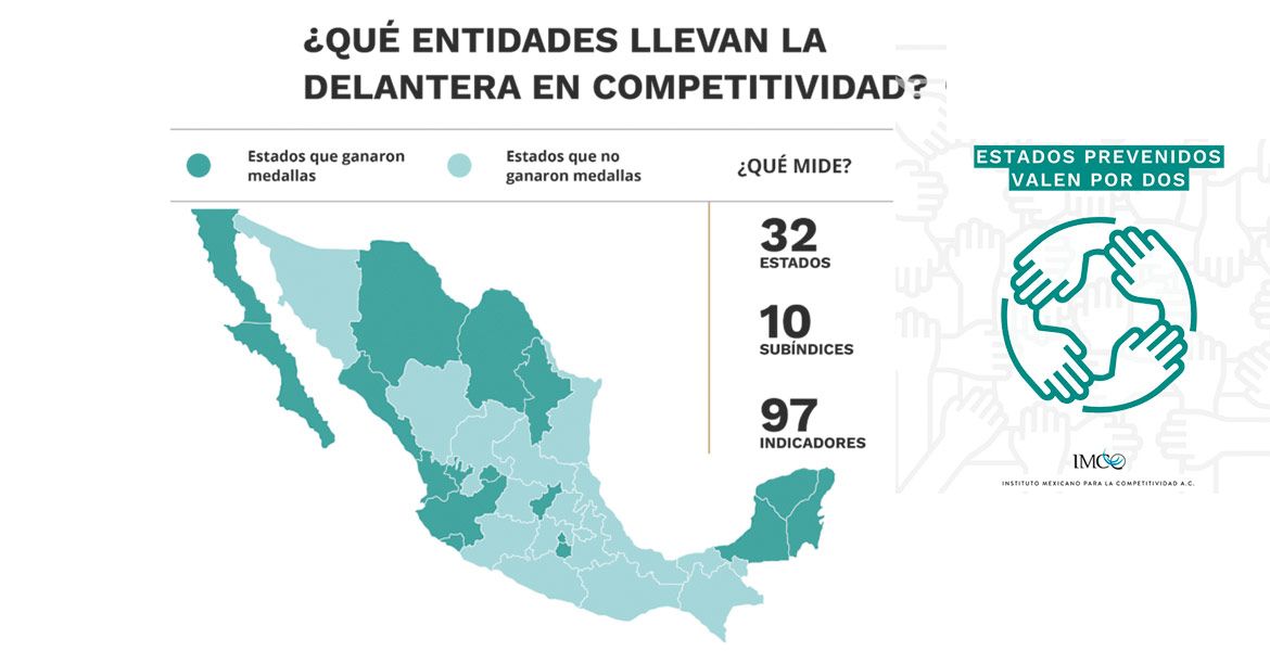 En el ICE 2020, el IMCO impuso medallas de primero, segundo y tercer lugar a los estados dependiendo la calificación que consiguieron en los índices y subíndices que fueron evaluados; de 32, 16 consiguieron medalla.
