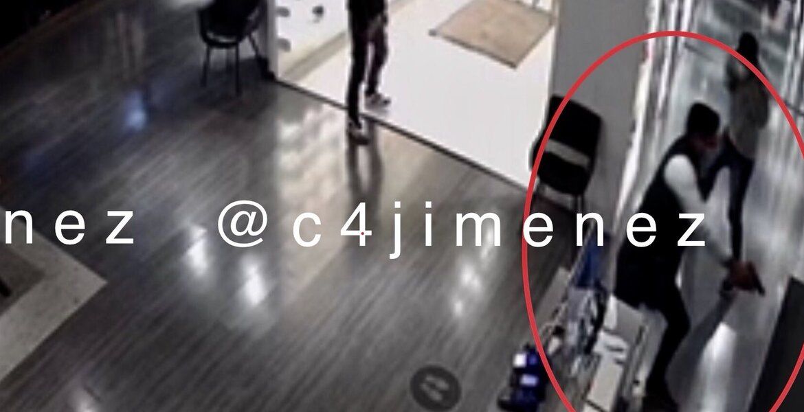 Las imágenes muestran que primero ingresaron dos hombres al negocio, quienes fingen ser clientes, minutos después ingresa el escolta y detrás de él otro sujeto que comienza a amenazarlo, además del guardia de seguridad y los empleados de la tienda.