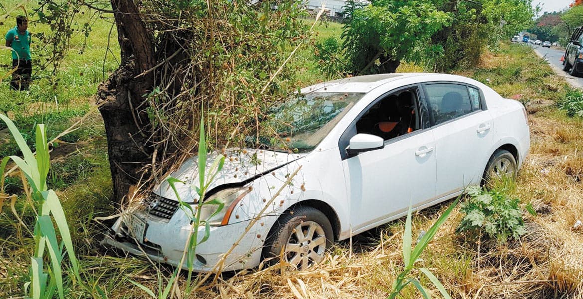 Dos mujeres tuvieron un incidente de tránsito a bordo de un auto color blanco, pues la conductora volanteó y el vehículo se salió del camino para estamparse contra un árbol, en la carretera Cuernavaca-Cuautla, en Yautepec.
