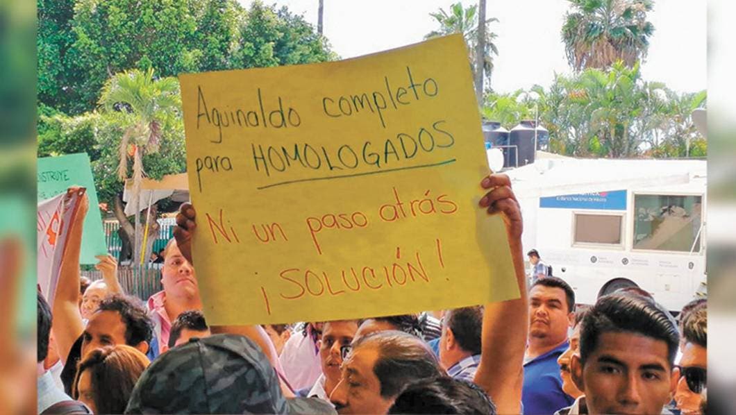 Los docentes homologados piden el reintegro del ISR que les fue descontado en las dos exhibiciones del pago de aguinaldo, quienes aseguraron que fue la primera vez que les aplicaron dicho descuento “por un error administrativo”.