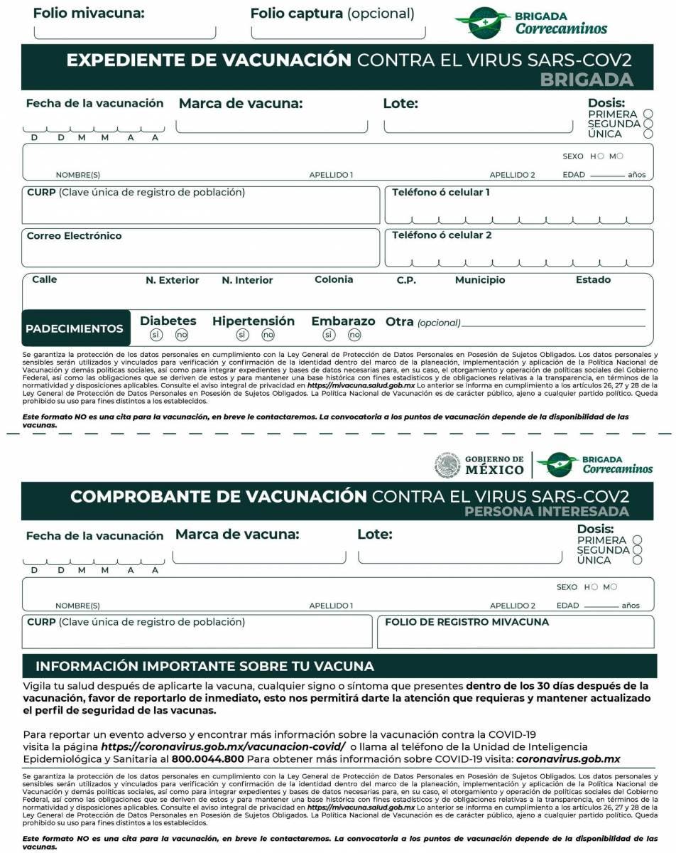 Debes llevarlo prellenado con tinta azul el día que te corresponda la aplicación de la vacuna con los siguientes datos: