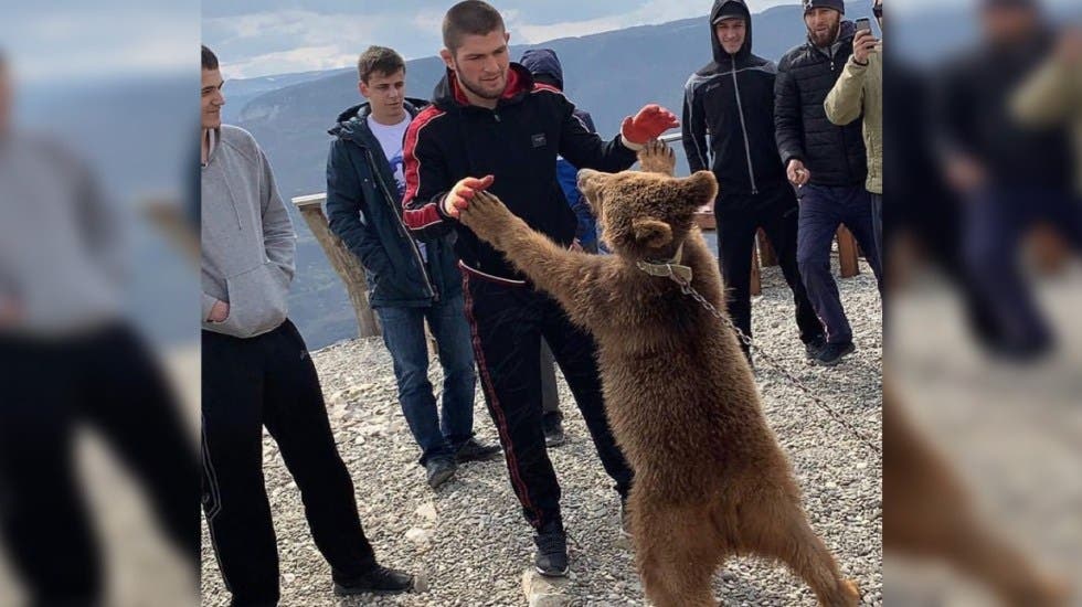 En redes sociales se hizo viral un video en el que aparece el luchador de artes marciales mixtas (UFC)Khabib Nurmagomedov junto a un grupo de amigos golpeando a un joven oso. Esto con el fin de recrear las imágenes de cuando el peleador era pequeño y entrenaba con un animal.