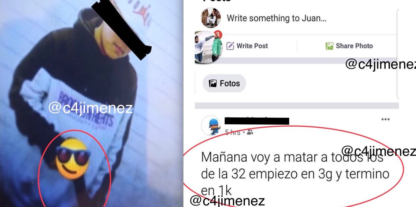 Decía el mensaje publicado el viernes pasado por un niño de 13 años de edad en la cuenta de otro compañero de la misma escuela. El mensaje era acompañado por una foto del estudiante que sostenía lo que parecía ser un arma de fuego.