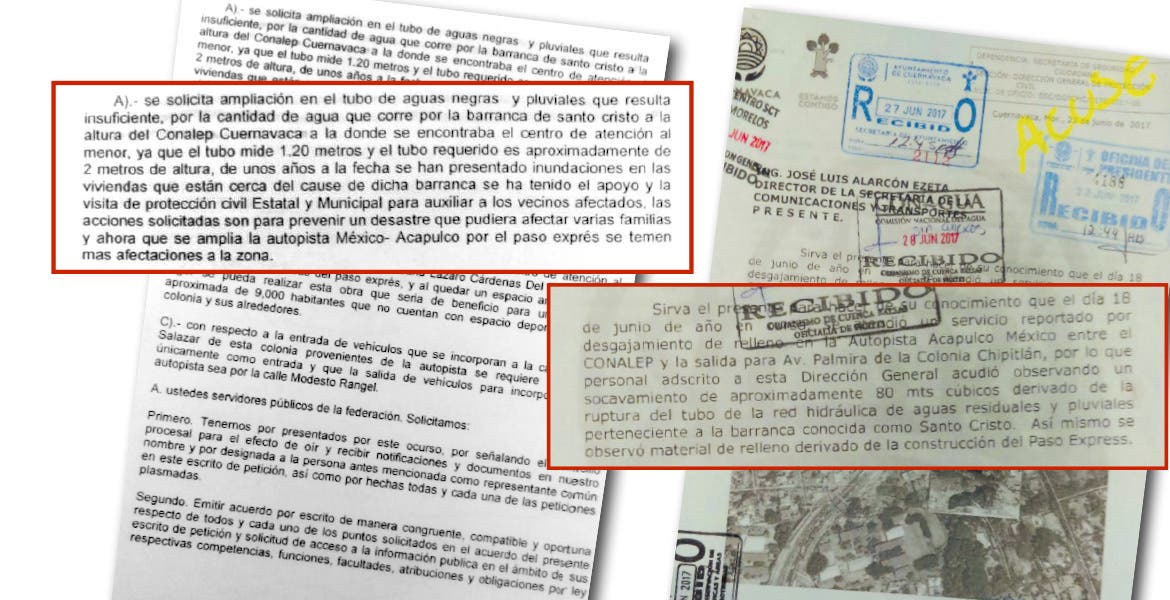 Los vecinos, representados por Alfonso Díaz Hernández, sustentaban su preocupación de un problema mayor en que el 28 de mayo y el 12 de junio de ese año se habían registrado dos inundaciones en ese punto de confluencia de la Barranca de Santo Cristo y las obras del Paso Express.
