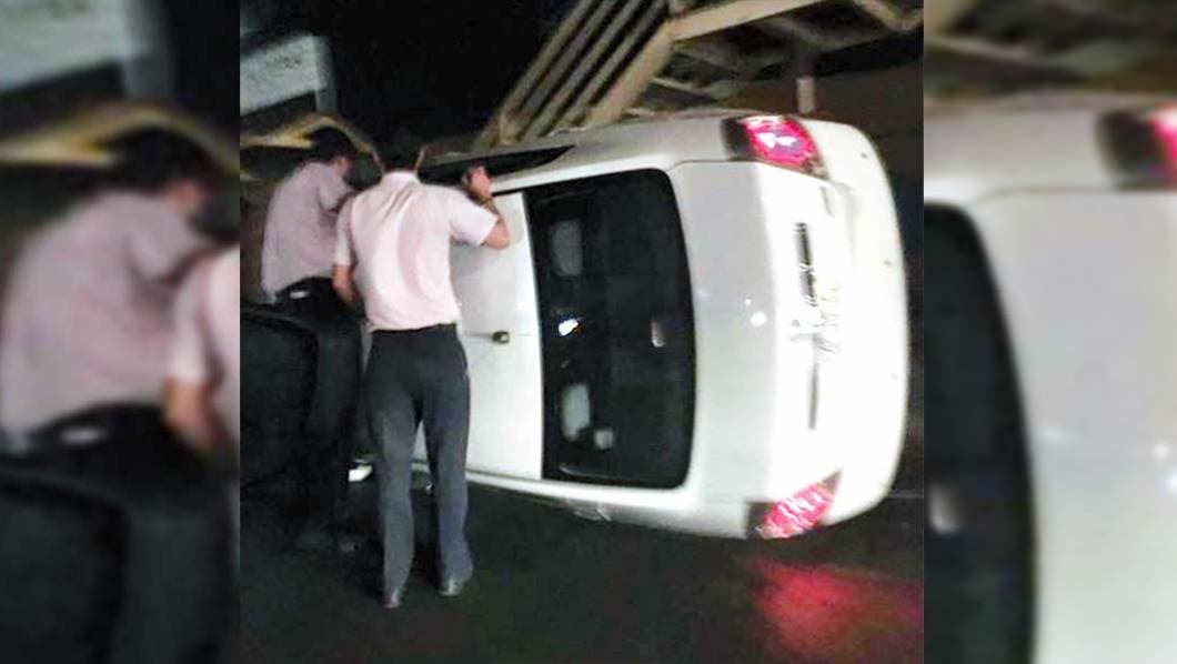 Asimismo, las personas enderezaron el coche antes de que llegaran policías, pero no pudo andar por lo que fue necesario que una grúa lo remolcara.