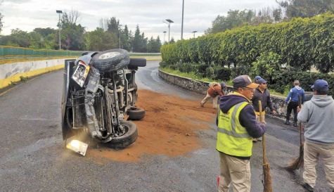 Con diversos golpes acabaron dos personas tras sufrir una aparatosa volcadura en la Autopista México-Cuernavaca, a la altura de la curva de La Pera. Al lugar acudieron paramédicos y elementos de la Guardia Nacional y según autoridades, el hecho fue provocado por el exceso de velocidad.