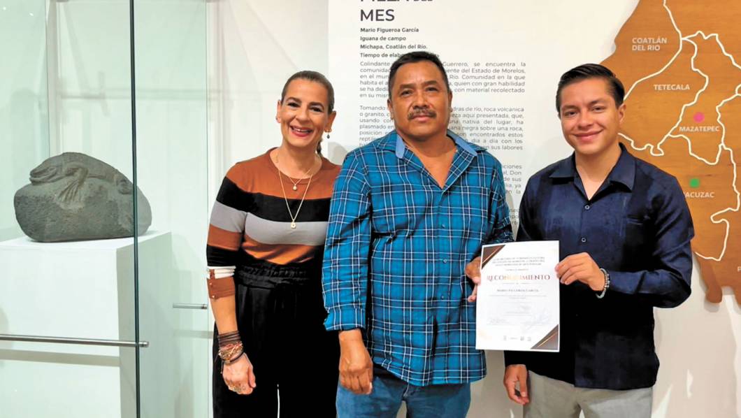 El Museo Morelense de Arte Popular (MMAPO) expone como pieza del mes una iguana de campo, “Iguana en Piedra”, obra tallada en piedra por el maestro Mario Figueroa García de la comunidad de Michapa, Coatlán del Río, cuna también de grandes talentos. La presentación la encabezó la secretaria de Turismo y Cultura, Julieta Goldzweig.