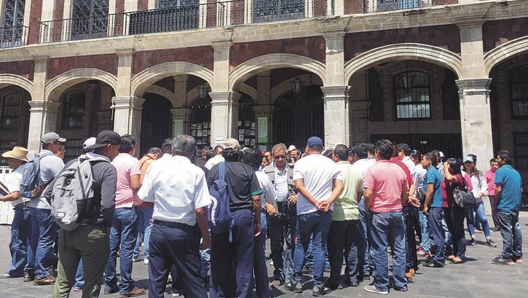 Elementos de la Policía Municipal de Xoxocotla y personal administrativo se manifestaron afuera de Palacio de Gobierno para exigir los pagos atrasados.