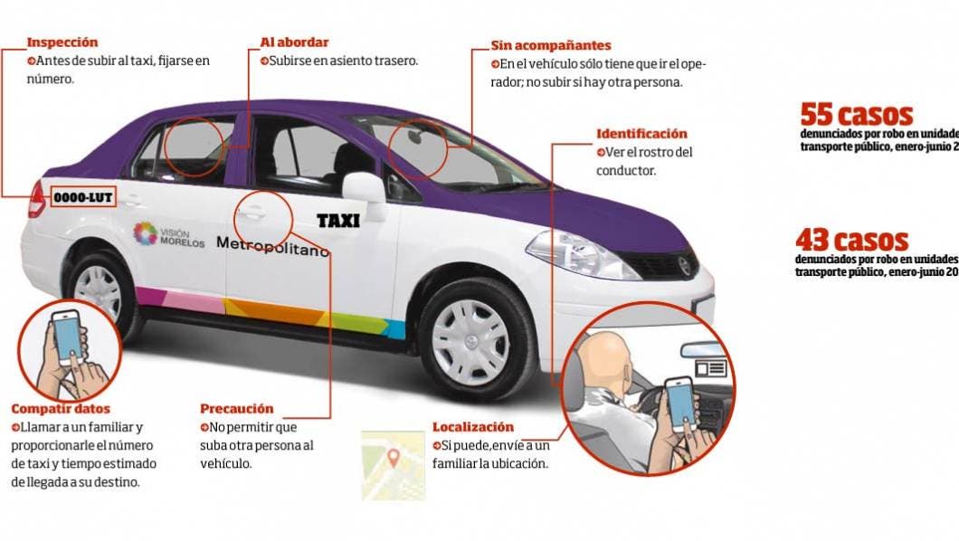 Lo anterior, tras una serie de hechos denunciados en las redes sociales, como este fin de semana, donde una joven abordó un taxi en el centro de Cuernavaca y fue raptada hacia la colonia Los Papayos, donde la golpearon y asaltaron; asimismo estas unidades son usadas para robar a la gente que retira cantidades elevadas de dinero en los bancos.