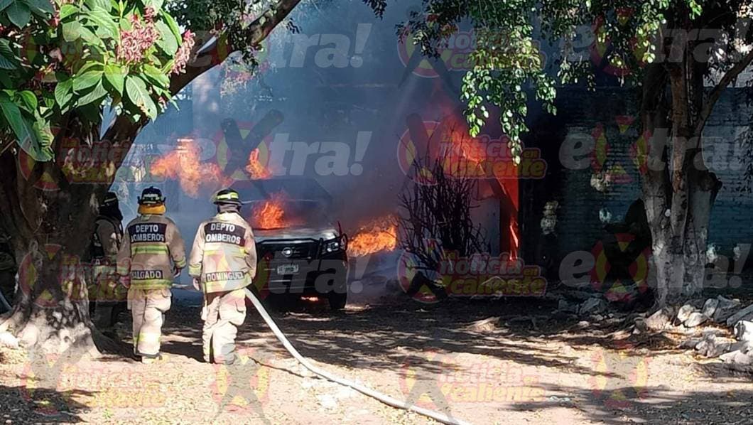 Cuando entraron al patio de la vivienda, se toparon con un infierno, pues una camioneta llena de cilindros de gas, se encontraba en llamas y las lenguas de fuego habían alcanzado un cuarto de la vivienda.