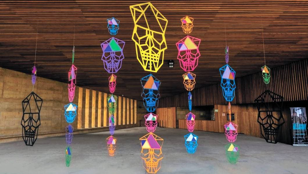 Juárez Ríos detalló que el Tzompantli Tlapalli Teopanzolco, de Jorge Manuel Mera Torres, podrá ser apreciado en el vestíbulo principal del recinto y esta obra que estará colocada hasta el 06 de noviembre se encuentra integrada por 32 calaveras en medidas variables que colgarán del techo del vestíbulo en formato de una pirámide móvil, lo que evoca el diseño arquitectónico triangular del CCT.