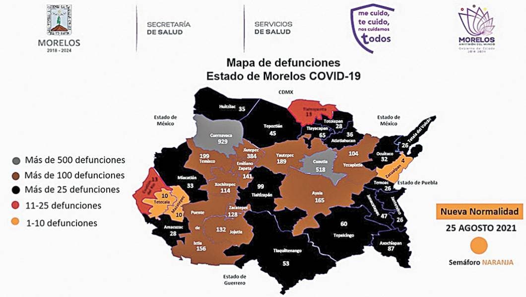 Defunciones. El estado de Morelos tiene un acumulado de 4 mil 063 defunciones por COVID-19.