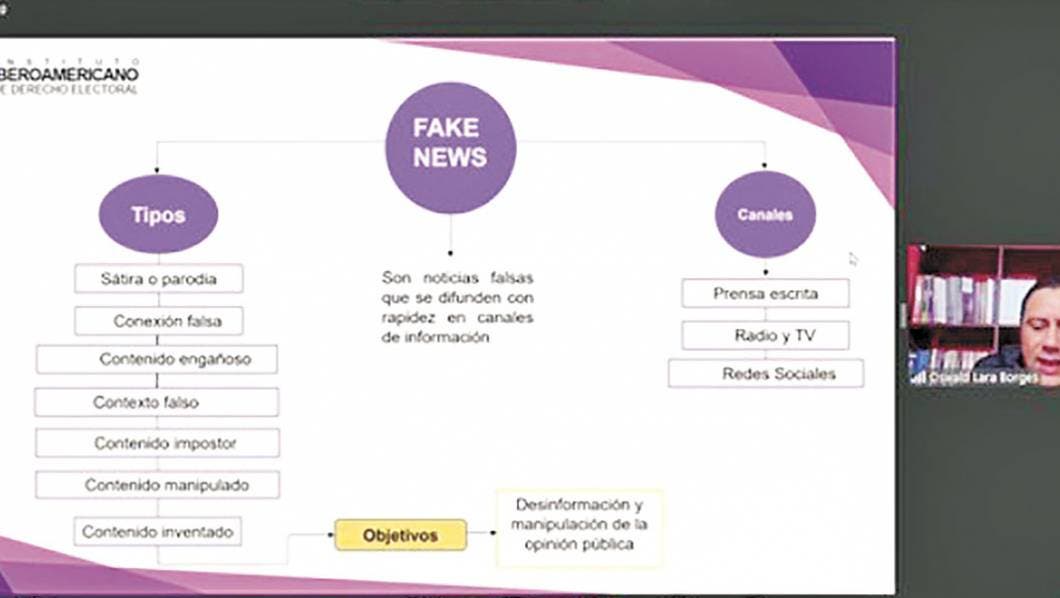El especialista en temas electorales y medios digitales realizó una presentación virtual, a través del Instituto Iberoamericano de Derecho Electoral, en el que explicó la importancia de evitar las noticias falsas en redes sociales, debido a las graves afectaciones que ocasionan.