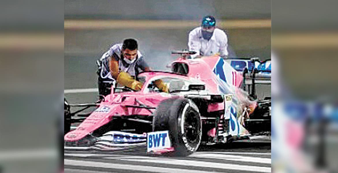 Bahrein.- Una falla en el motor impidió que el piloto mexicano Sergio Pérez ocupara un lugar en el podio en el Premio de Bahrein, carrera en la que el francés Romain Grosjean logró salir ileso después de un fuerte accidente.