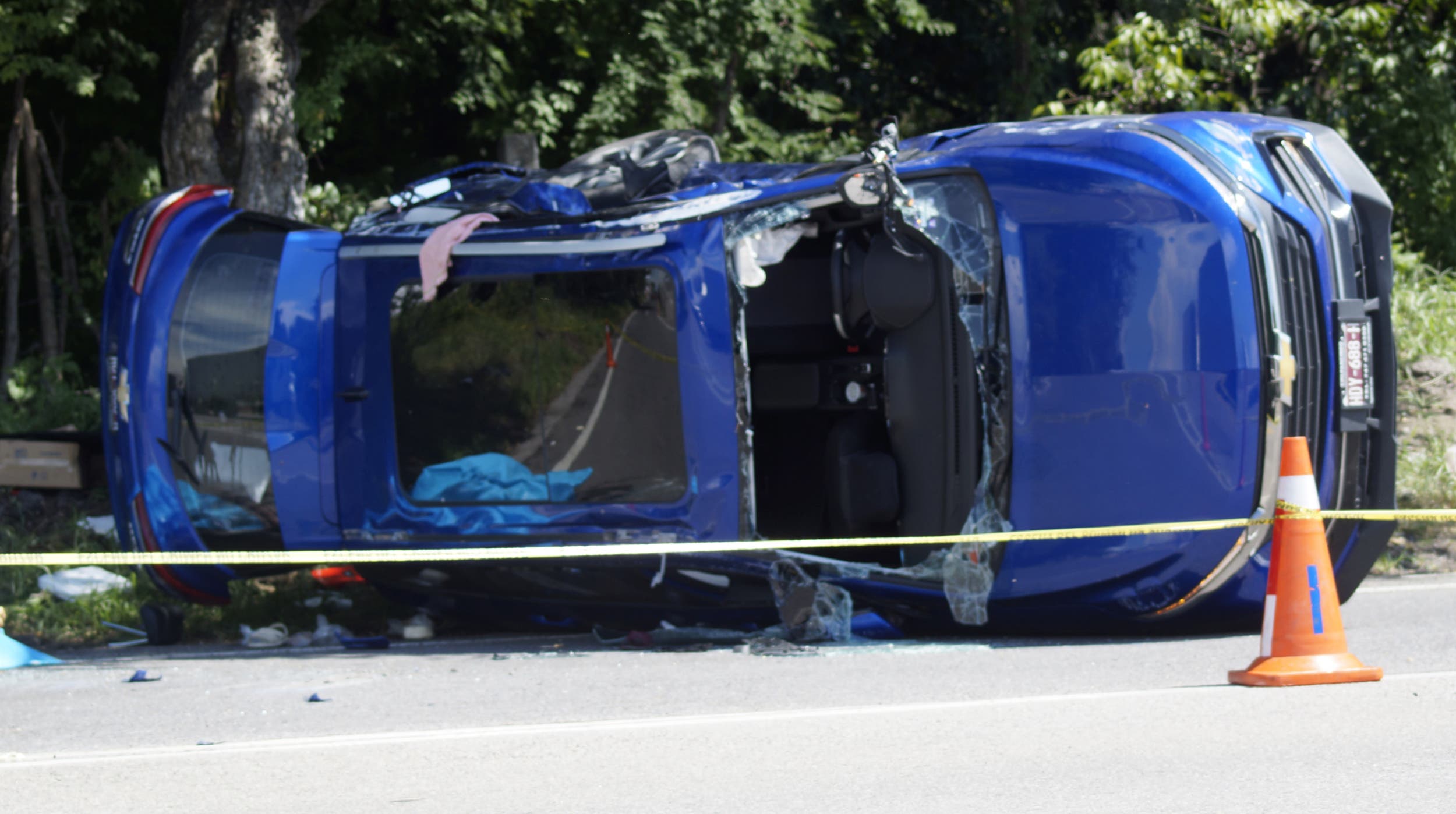 De acuerdo con testigos, la conductora, de aproximadamente 45 años, intentó dar vuelta en U cuando el vehículo pesado los embistió, provocando que la camioneta volcara.