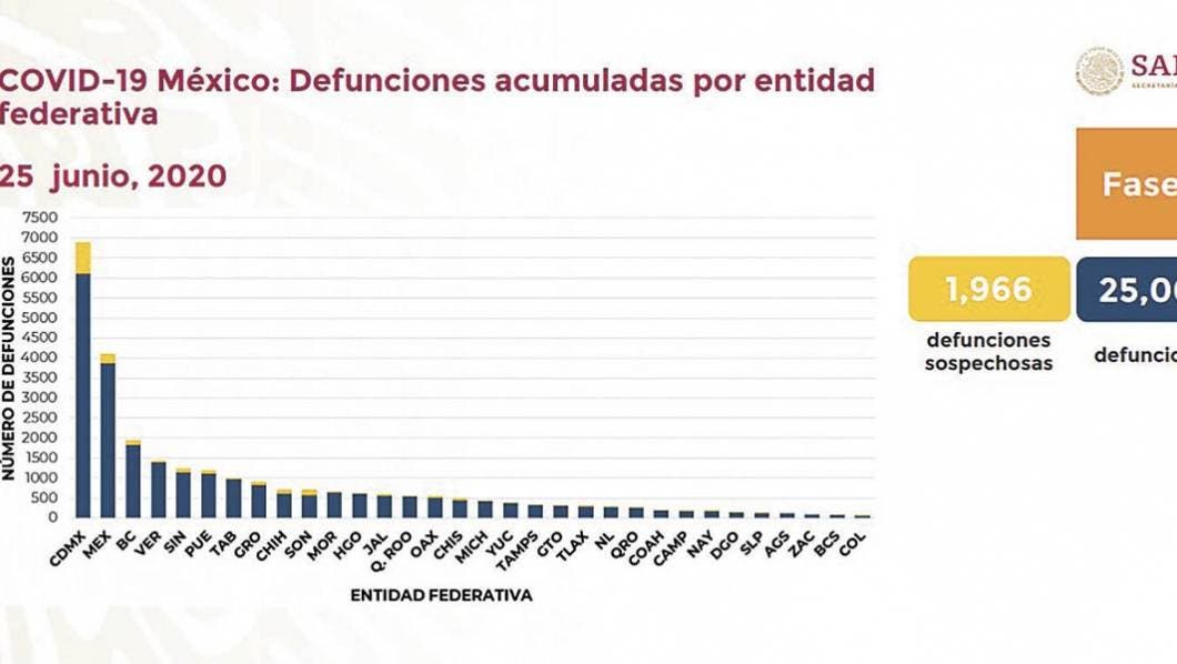 Más del 50 por ciento de las defunciones se concentran en Ciudad de México y Estado de México, le siguen Chihuahua, Tabasco, Baja California, Quintana Roo, Veracruz, Hidalgo, Puebla, Sinaloa, Guerrero y Morelos.