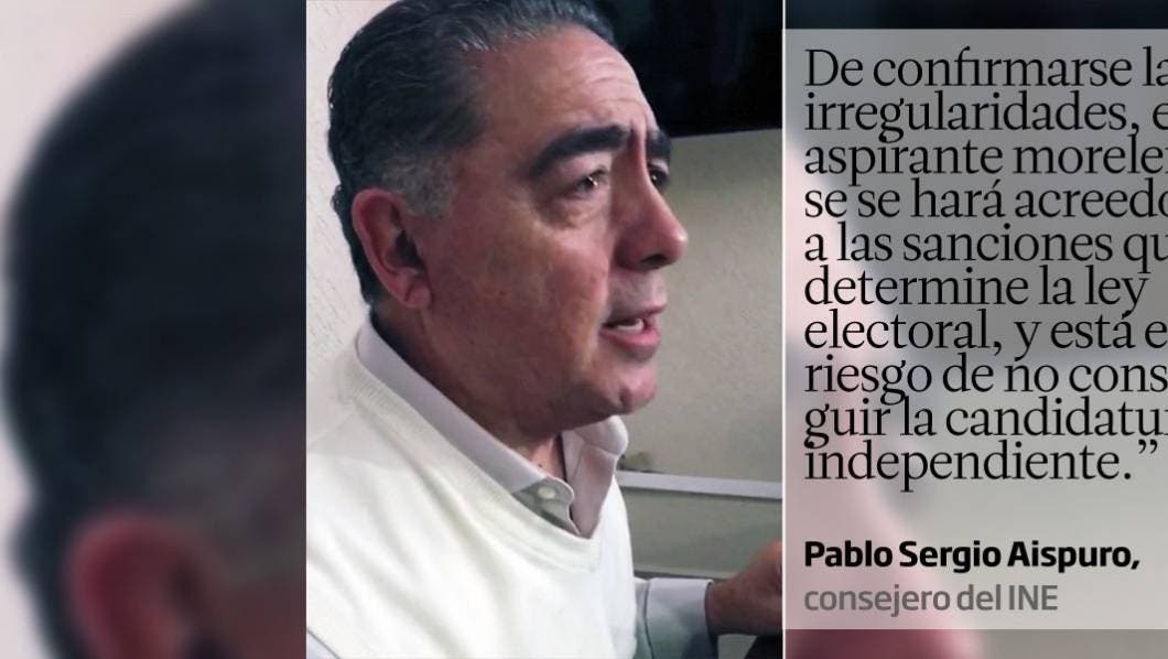 De confirmarse las irregularidades, el aspirante morelense se hará acreedor a las sanciones que determine la ley electoral, y está en riesgo de no conseguir la candidatura independiente." Pablo Sergio Aispuro, consejero del INE