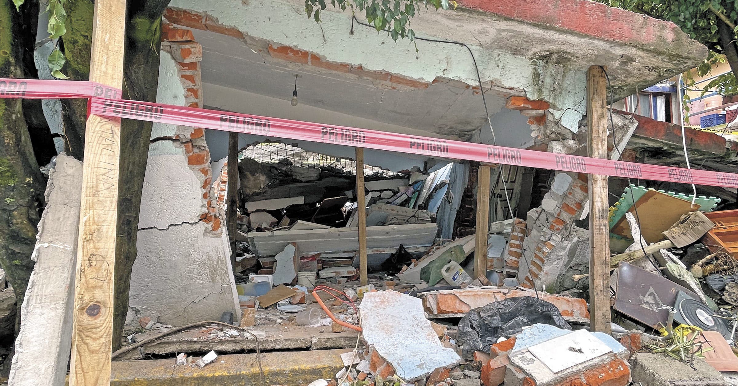 Bajo el argumento de que no tienen a dónde ir y el temor de perder su patrimonio, los vecinos continúan con sus actividades normales, la diferencia es que las casas marcadas con los números 38 y 40 quedaron bajo los escombros.