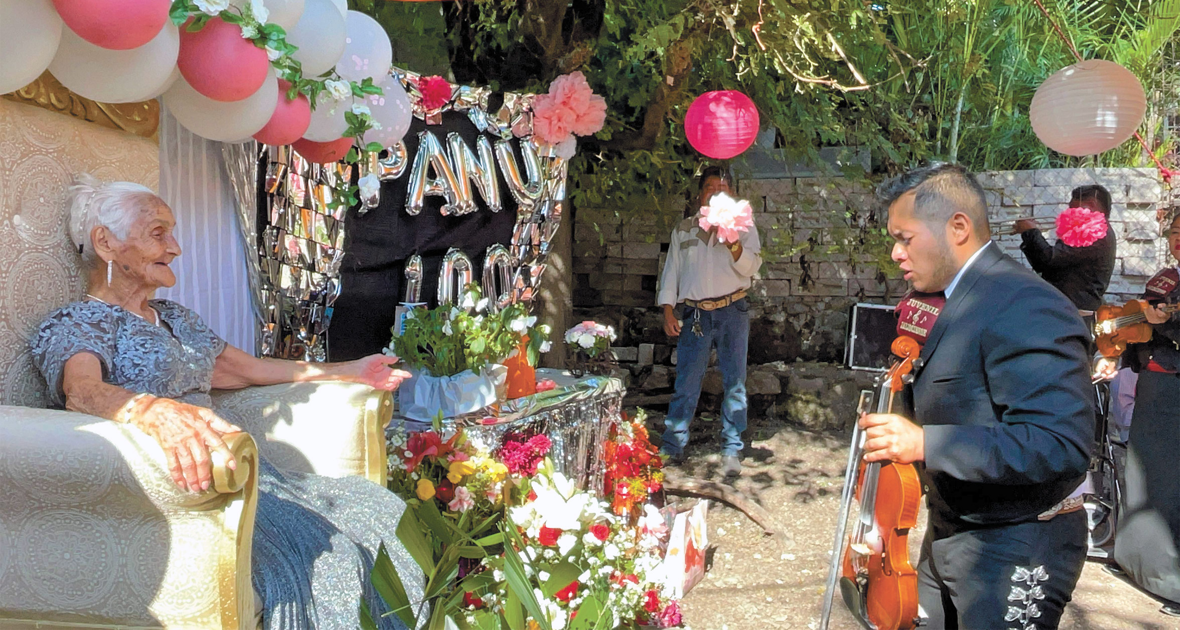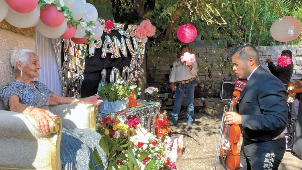 Ayer, poco después de las tres de la tarde los invitados comenzaron a llegar a casa de doña Panu; ya estaban listas la música, la comida y la bebida; así como una silla especial que le mandaron a hacer para que celebrara como una reina.