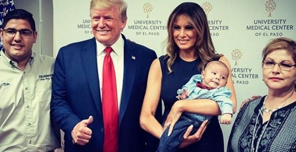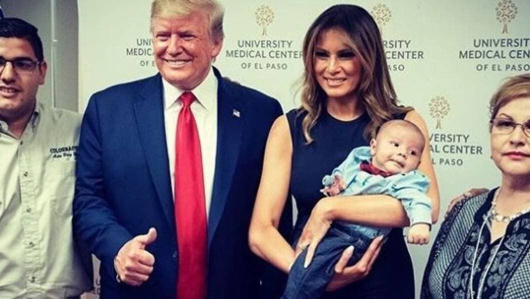 Así ha quedado comprobado luego de otro gesto ante las cámaras esta semana, cuando posó sonriente y con el dedo pulgar en alto junto a su esposa Melania, quien llevaba en brazos a un bebé de dos meses que sobrevivió al tiroteo en el Walmart de El Paso.