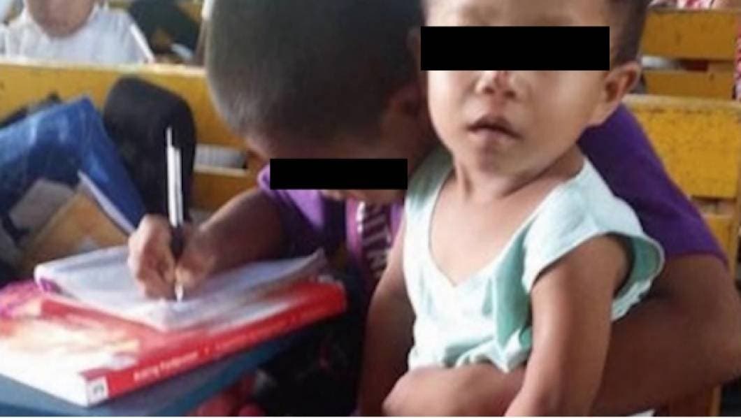 La fotografía de dos hermanos filipinos, de 9 y 2 años, sentados en el mismo pupitre se viralizó en redes sociales debido a la compasión que generó la historia que hay detrás de los protagonistas.