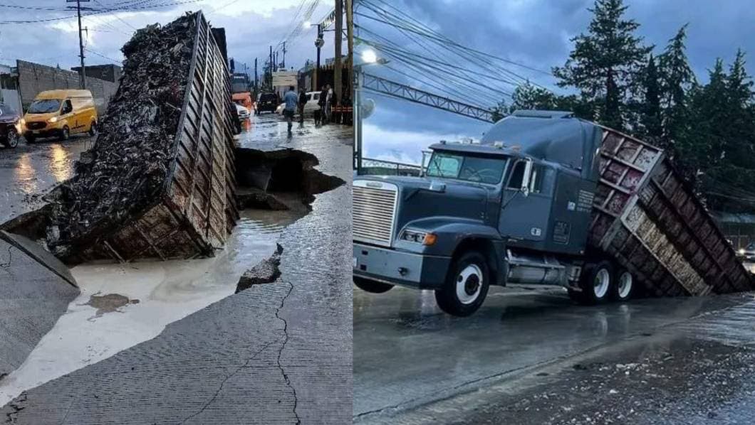 Mientras que en la Ciudad de México (CDMX) un camión de basura se hundió por más de tres horas en un socavón en calles de la alcaldía Benito Juárez. El vehículo se encontraba estacionado cuando se escuchó un estruendo y momentos después la llanta cayó en el hoyo.