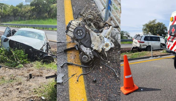 Primeros informes indican que un camión chocó de frente contra un auto y una camioneta, quedando las unidades destrozadas e invadiendo los 2 carriles.