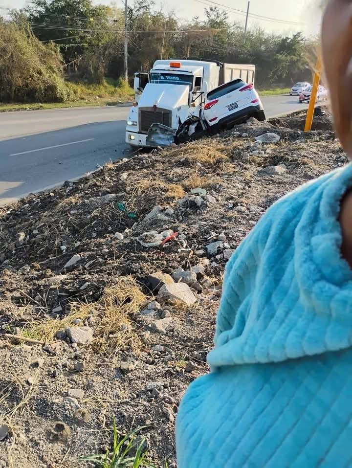 De acuerdo con testigos, la conductora intentó rebasar un tráiler o ganarle el paso, pero éste la impactó y provocó que perdiera el control; terminó su marcha en el camellón central.