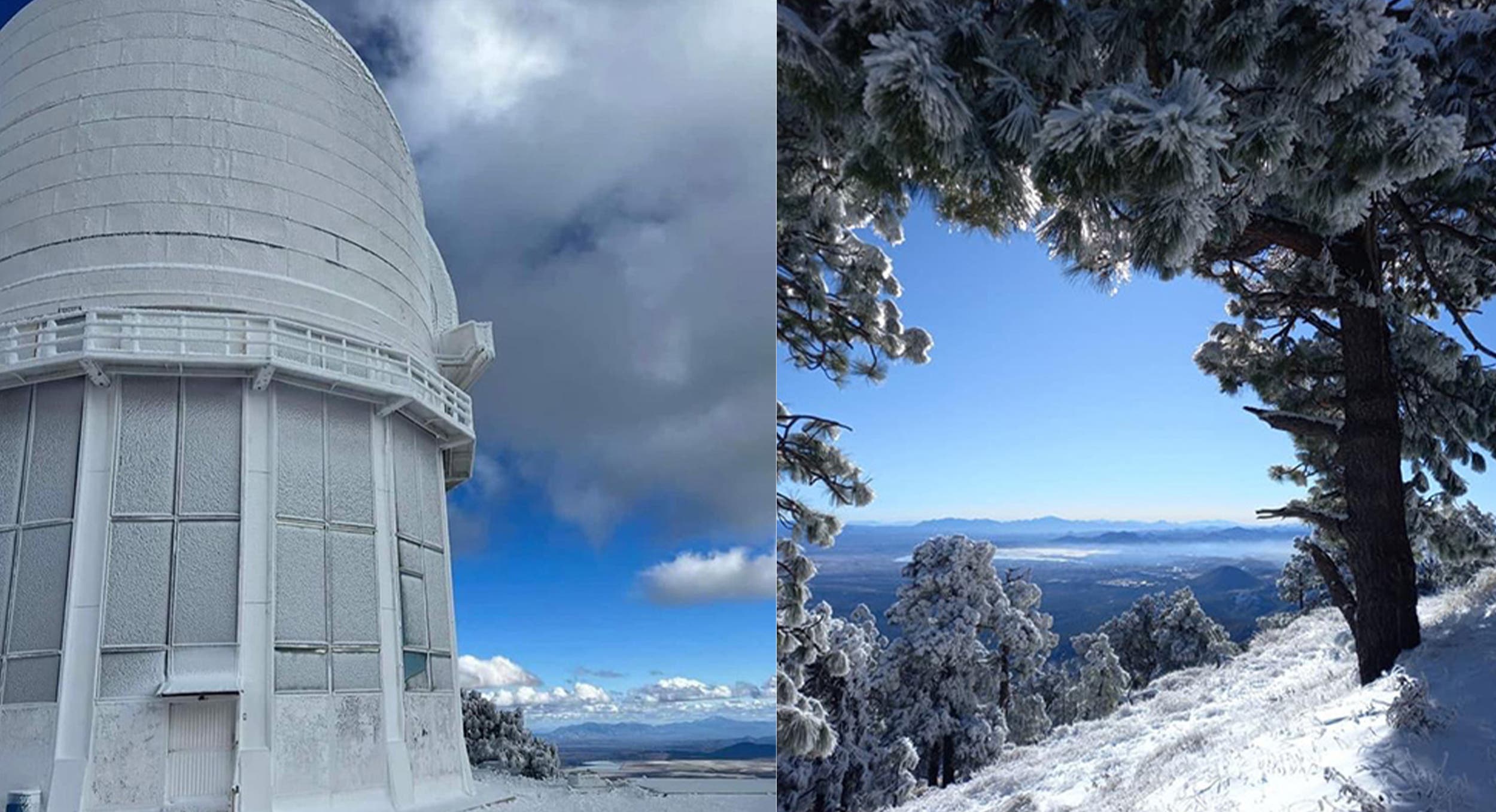 La sierra de sonora se pinto completamente de blanco tras res días de nevadas que generó la primera tormenta invernal de la temporada misma que regaló hermosas postales como las del observatorio Astrofísico ‘’Guillermo Haro’’, ubicado en cananea.
