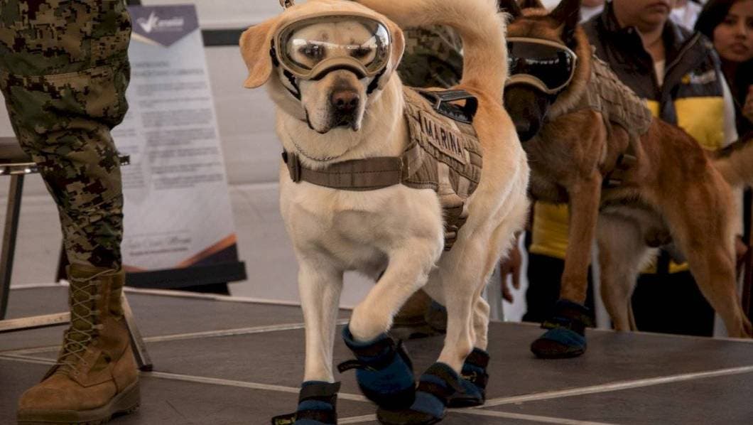 Frida, la perra rescatista de la Secretaría de Marina (Semar) se jubila este lunes.