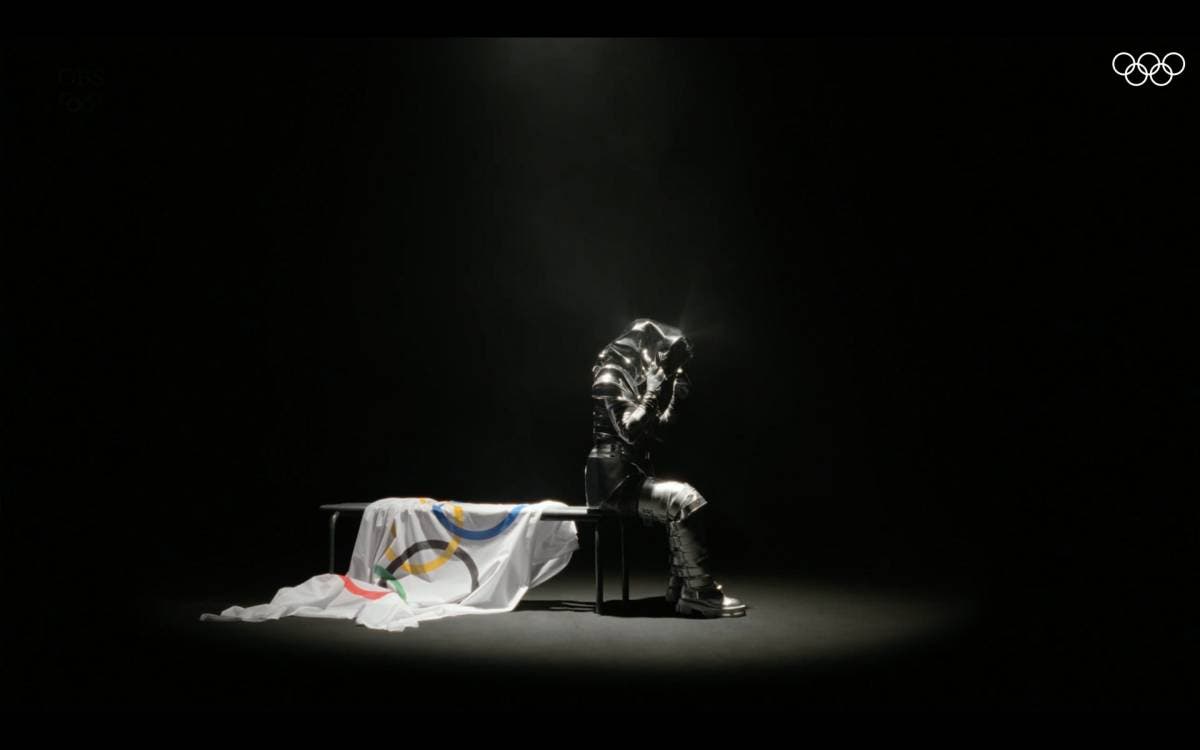 Aparecen fragmentos momentos importantes de los deportistas en pasados juegos olímpicos, esto mientra durante pasa el jinete montando un caballo, que es un homenaje a Juana de Arco.