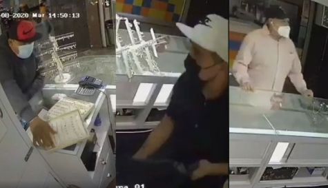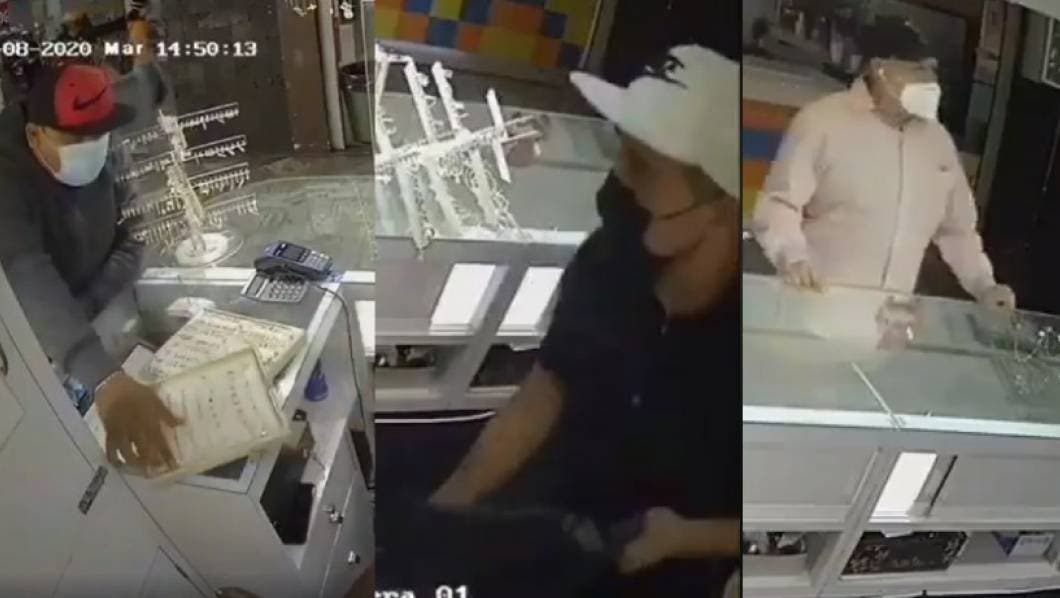 En él se aprecia a un hombre que se acerca a 2 vendedoras y las encañona, mientras otro cómplice se trepa al mostrados para vaciar la mercancía.