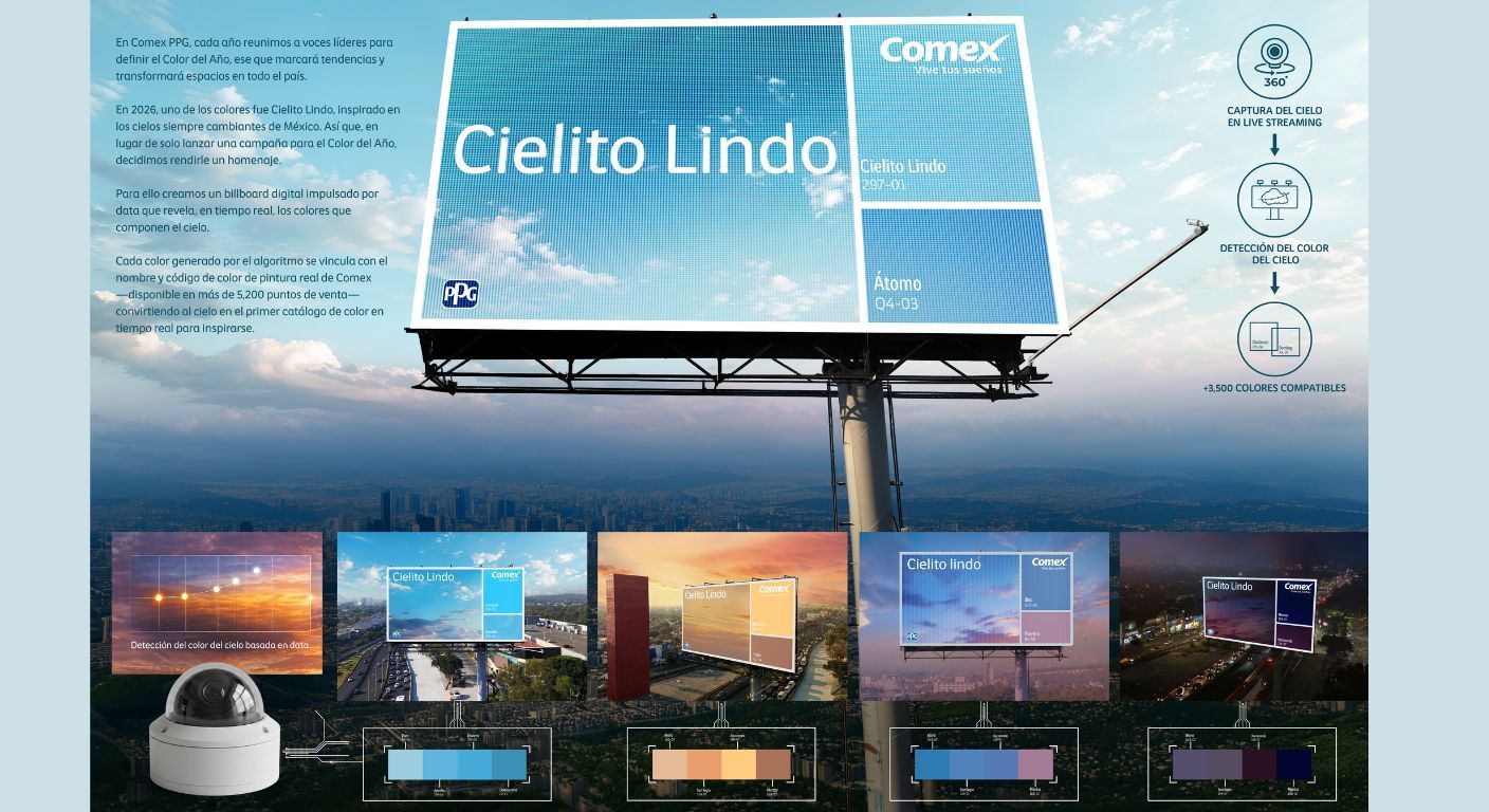 No es un anuncio estático. Es un lienzo vivo donde la naturaleza dicta el diseño y la tecnología lo hace posible. Inspirada en “Cielito Lindo” (297-01), uno de los dos Colores del Año Comex 2026 —junto a Xoconostle (128-07)—, esta pieza redefine por completo el Out of Home (OOH) y demuestra que la mejor creatividad no interrumpe: conecta con lo que siempre ha estado ahí.