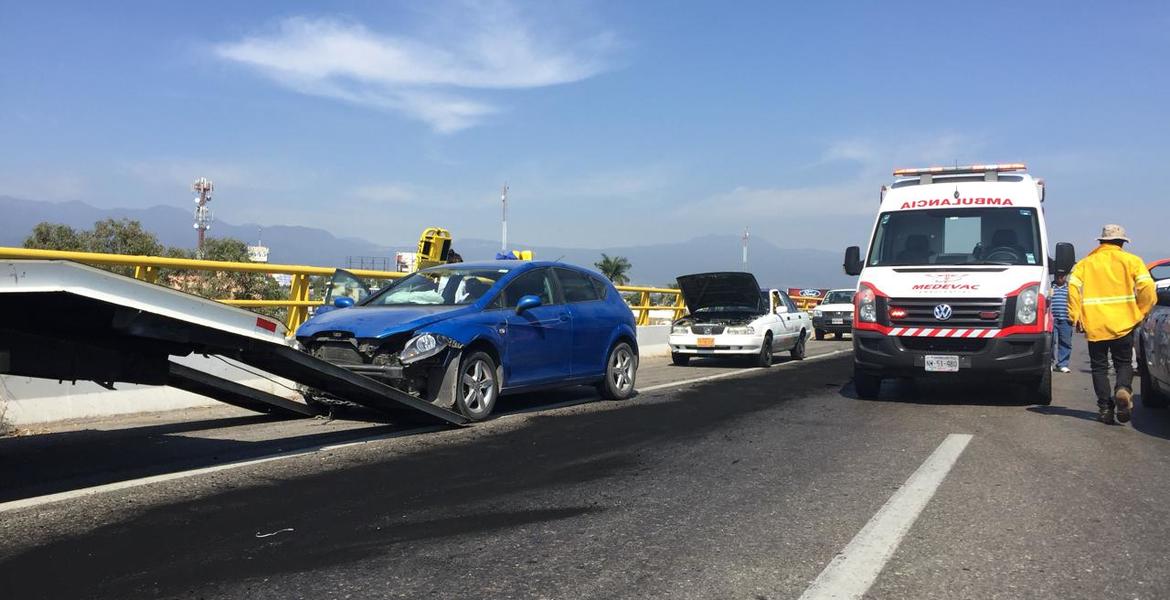 Por lo menos 6 vehículos resultaron afectados este mediodía en el distribuidor vial Palmira, carril con dirección a Acapulco, luego de que aceite quedara derramado en la zona.